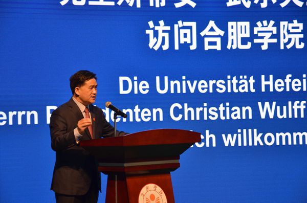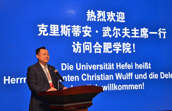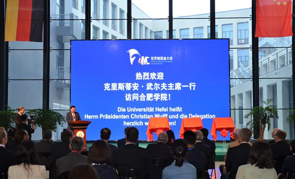 5月26日,德國前總統、全球中小企業聯盟主席克里斯蒂安?武爾夫來訪我校并出席中德先進制造業(合肥)合作促進中心、全球商會合作網基地、中德固體廢棄物研究協同創新中心揭牌儀式。