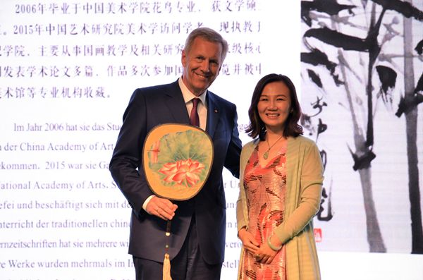 儀式上,武爾夫、曹方、納賽爾、毛存光、蔡敬民、王其東共同為中德先進制造業(合肥)合作促進中心、全球商會合作網基地、中德固體廢棄物研究協同創新中心揭牌。合肥學院教師陶莉向武爾夫贈送由其創作的中國傳統藝術品團扇。
