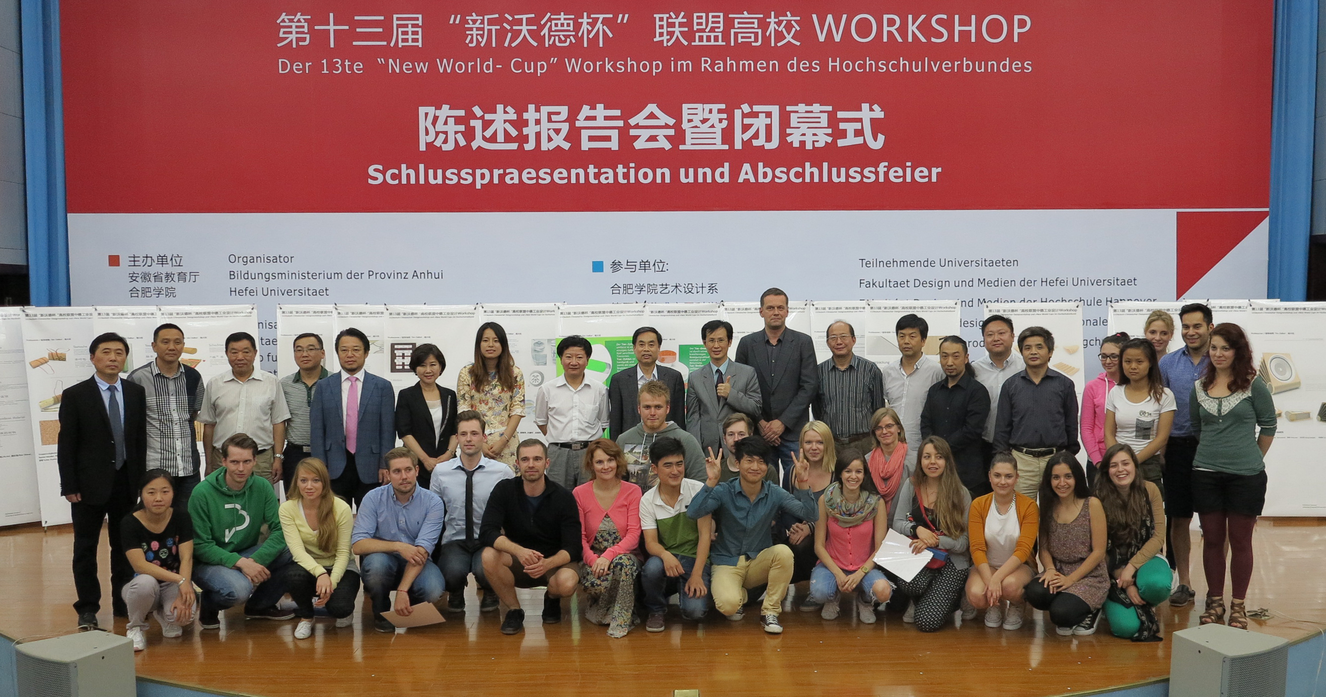 經過十天的合作交流,5月27日,第十三屆“新沃德杯”聯盟高校WORKSHOP陳述報告會暨閉幕式在我院圖書館學術報告廳圓滿落幕。安徽省教育廳外事處副處長許俊農,我院副院長陳嘯,教務處副處長杜奕智,藝術設計系謝海濤主任、楊大松教授,德國漢諾威應用科學大學奧爾克、苔莎?霍恩教授,韓國韓巴大學韓恩珠、具常教授,臺灣銘傳大學張文德、林建華教授,新沃德(香港)科技有限公司代表藺春騰,深圳裝飾集團公司科技研發中心副總裁謝方鐸,合肥榮電實業股份公司總經理夏俊生以及來自安徽應用型本科高校聯盟的師生代表等參加了閉幕式。