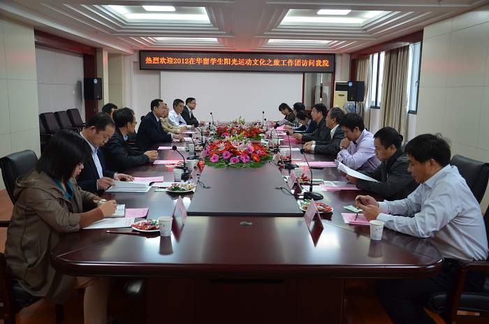 薛彥青對我院近年來教育發展取得的成績表示贊嘆,并介紹了“留動中國,親近九州——2012在華留學生陽光運動文化之旅”活動相關情況。該活動是貫徹落實教育部《留學中國計劃》中關于來華留學生生活方面的相關要求,旨在進一步豐富外國留學生的在華生活,為來華留學生體驗中國傳統文化、了解中國社會發展現狀搭建平臺,促進中外學生間的交流與融合,擴大來華留學生在國內外的影響。薛彥青希望能夠以此次拜訪為契機,加深了解,促成合作。