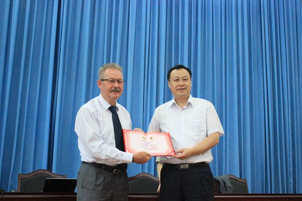 奧托?凱爾斯滕教授在報告中 蔡敬民書記為奧托?凱爾斯滕教授頒發(fā)客座教授證書