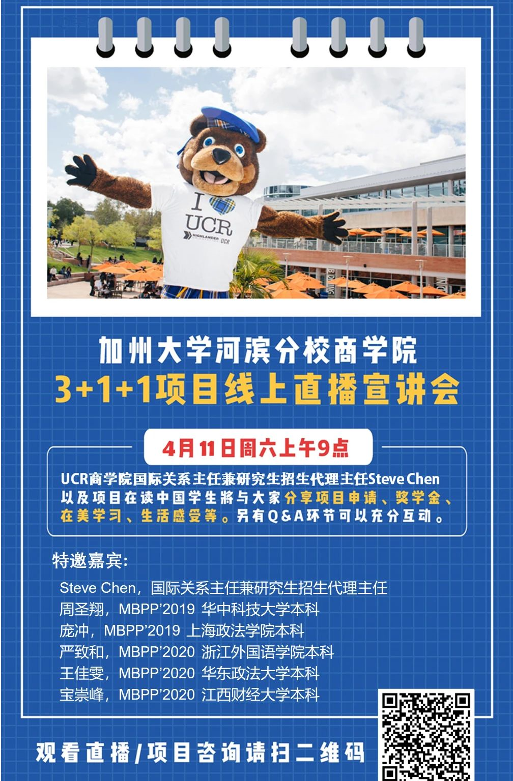 美國加州大學河濱分校項目介紹:3+1+X MBPP線上宣講會