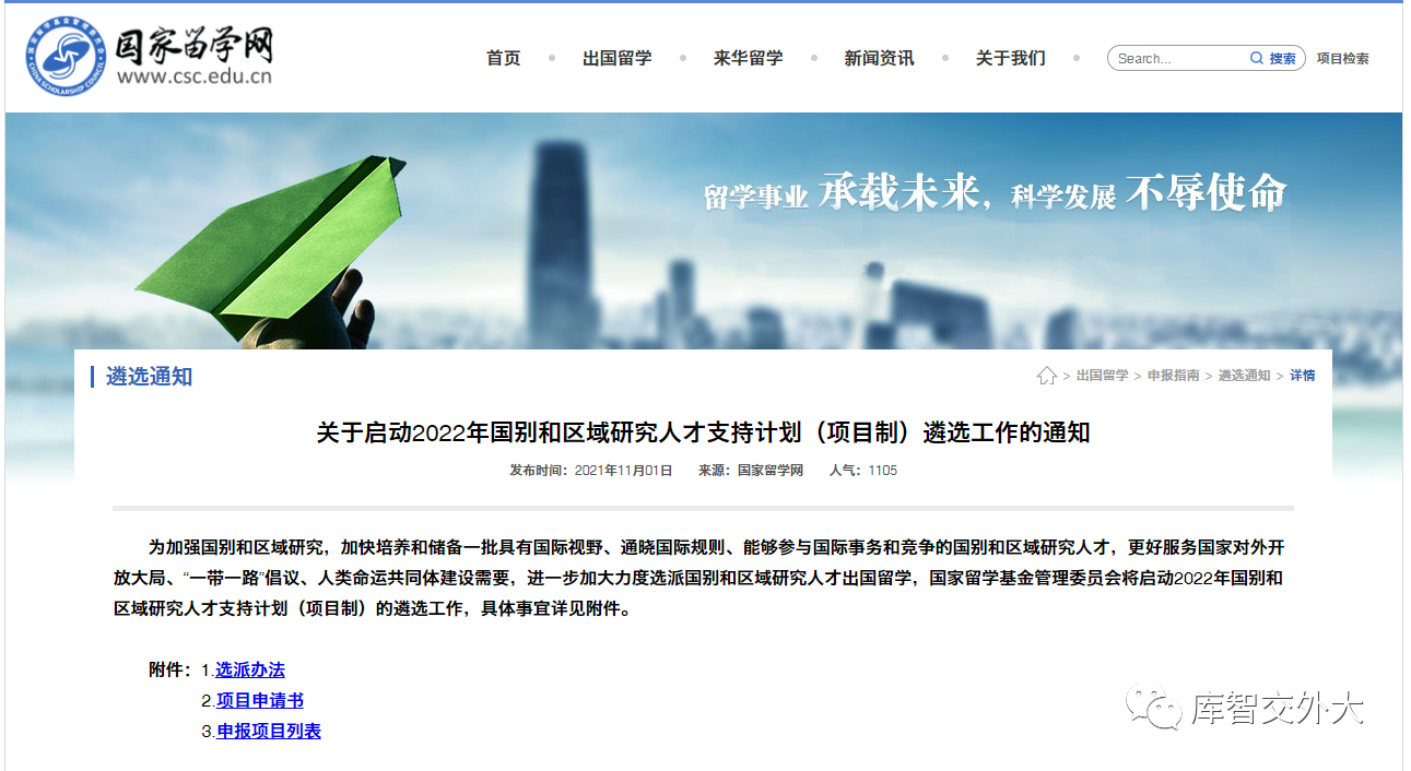 重磅 | 國家留學基金委關于啟動2022年國別和區域研究人才支持計劃(項目制)遴選工作的通知