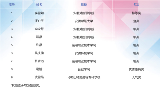 根據安徽省教育廳辦公室皖教辦函〔2022127 號《關于舉辦“第十五屆安徽省順天鄉(xiāng)杯韓國語演講大賽”的通知》安排,依據賽前公布的比賽規(guī)則,經大賽組委會選拔評比,現將大賽結果相關事宜通知如下:
