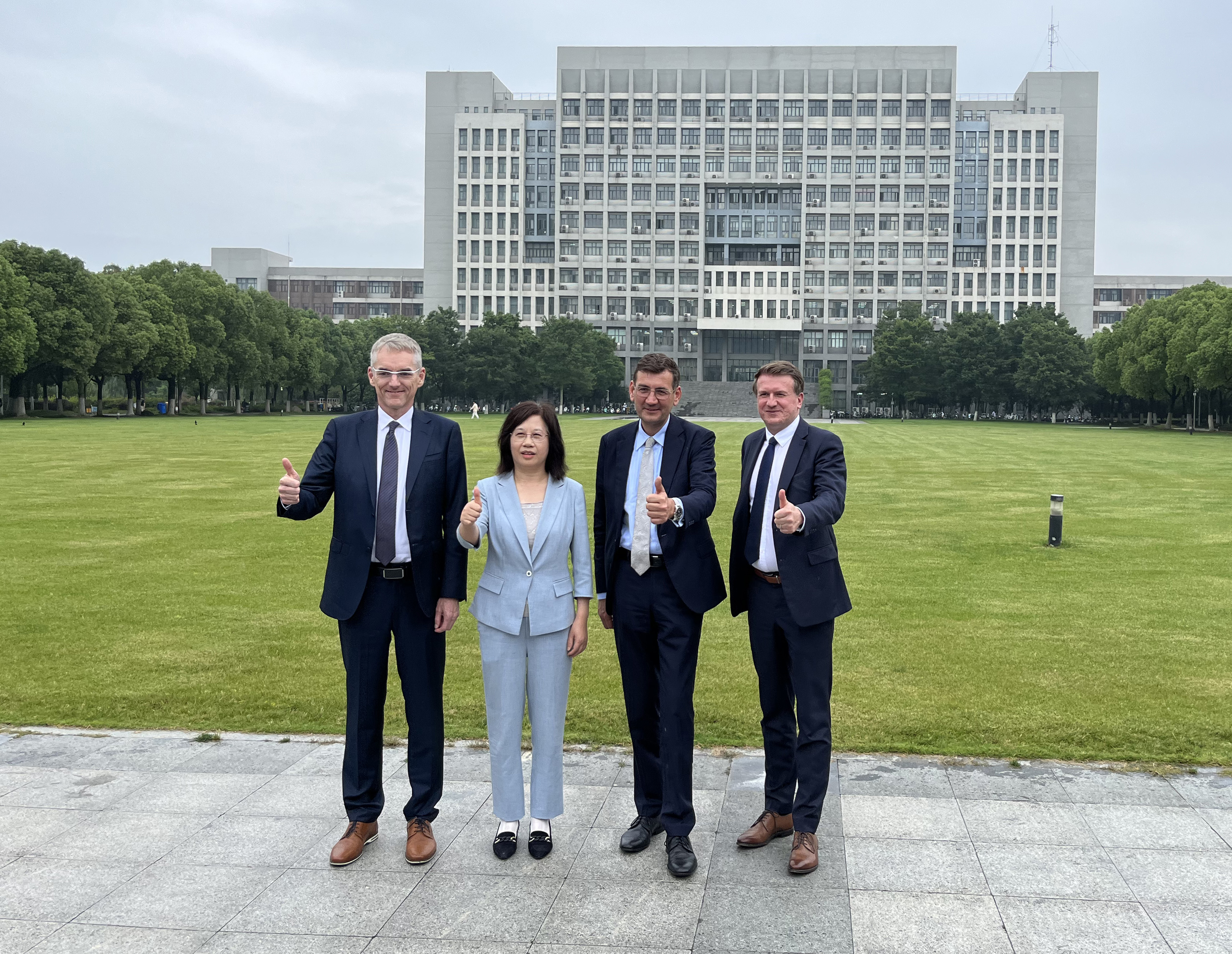 2023年5月26日,吳春梅校長在學(xué)校歡迎德國大眾汽車集團(tuán)管理董事會成員、人力資源管理負(fù)責(zé)人柯利安Gunnar Kilian率領(lǐng)的代表團(tuán),深入中德教育合作示范基地,交流大眾學(xué)院的建設(shè)。合肥市委副書記路軍陪同訪問,并視察大眾學(xué)院建設(shè)進(jìn)展。