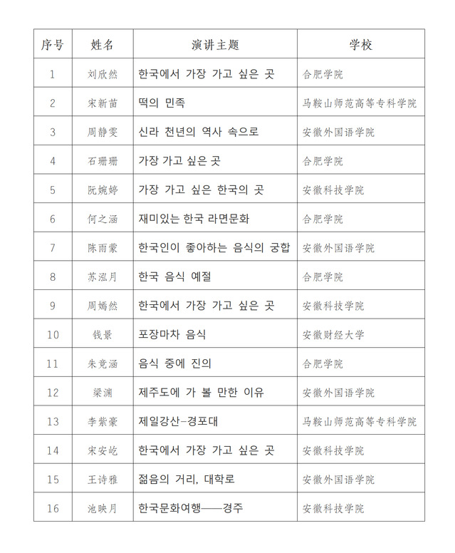 關于第十六屆安徽省順天鄉杯韓國語演講大賽決賽的相關通知