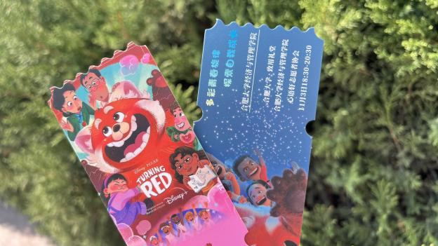 活動開始前,經管學院心語軒志愿者協會的工作人員們在場外裝飾禮堂,多處入口已做好入場引導,為觀影同學們營造了一個安靜有序的觀影環境。在電影放映前,工作人員為每位觀影同學準備了紀念票根和禮品周邊,作為次心靈之旅的紀念。
