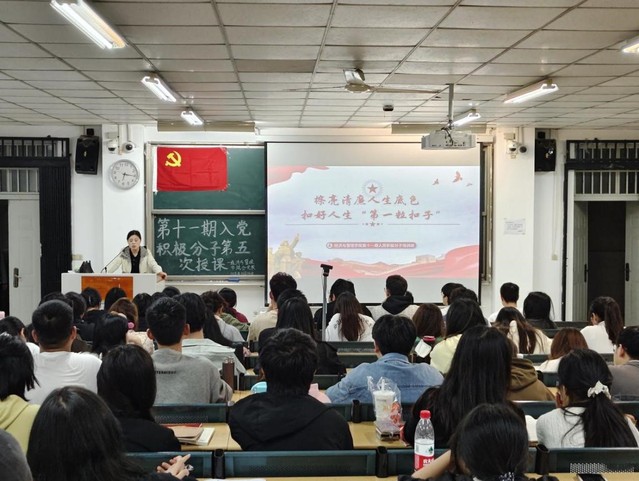 為引導學生樹立正確價值觀念,傳承優良紅色基因,2024年11月14日晚上,經濟與管理學院分黨校第十一期入黨積極分子培訓班第五課于4棟107教室開展。學院黨委副書記夏丹青擔任主講人。經濟與管理學院第十一期入黨積極分子培訓班全體學員參加學習。