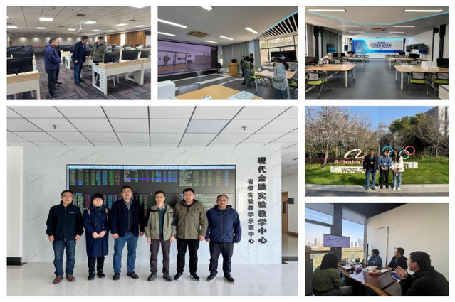 321日上午,調研組一行前往浙江財經大學現代金融實驗教學中心ERP實驗中心開展調研,浙江財經大學資產與實驗室管理處副處長黃偉瀧、學科部主管羅松、高行春等陪同參觀,并就投資金融專業實驗室建設、實驗室資源優化機制教學實踐與科研應用方面的現狀與發展趨勢等方面進行探討與交流。當天下午,調研組一行還前往浙江工業大學經濟學院和管理學院信息與實驗中心繼續開展調研,期間由實驗中心負責人張亮等陪同參觀了AI/VR智慧實驗室、人機智能與產業綠色創新實驗室等。在AI/VR實驗室內,老師們還體驗了VR眼鏡、VR智慧屏等各類實驗設備,雙方就VR實驗課程、虛擬仿真建設、教學科研結合等問題進行了熱烈而廣泛的交流。322日,調研組一行前往阿里巴巴(中心)濱江園區看望了2023屆經管學院優秀校友胡穎,傳達母校的關懷和問候。會談中就校友個人工作發展狀況及未來規劃、校友所在單位人才需求意向和崗位等內容進行了深入探討,雙方還初步約定利用探望母校之際通過求職就業座談會的形式針對求職經驗、職業規劃、招聘資源等信息跟學弟學妹進行分享和交流。