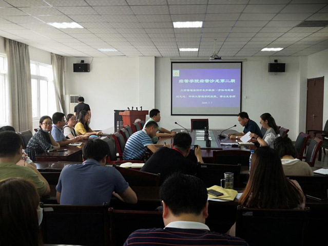 7月7日下午,主題為《工商管理案例的開發和教學:方法與感悟》的學術講座暨第二期經管沙龍在經濟與管理學院4號樓會議室舉行,中國科學技術大學管理學院劉志迎教授受邀進行講學。沙龍由經管學院院長陳江華主持,副院長宋玉軍、吳悅以及經管學院50多位中青年老師參加了本次活動。