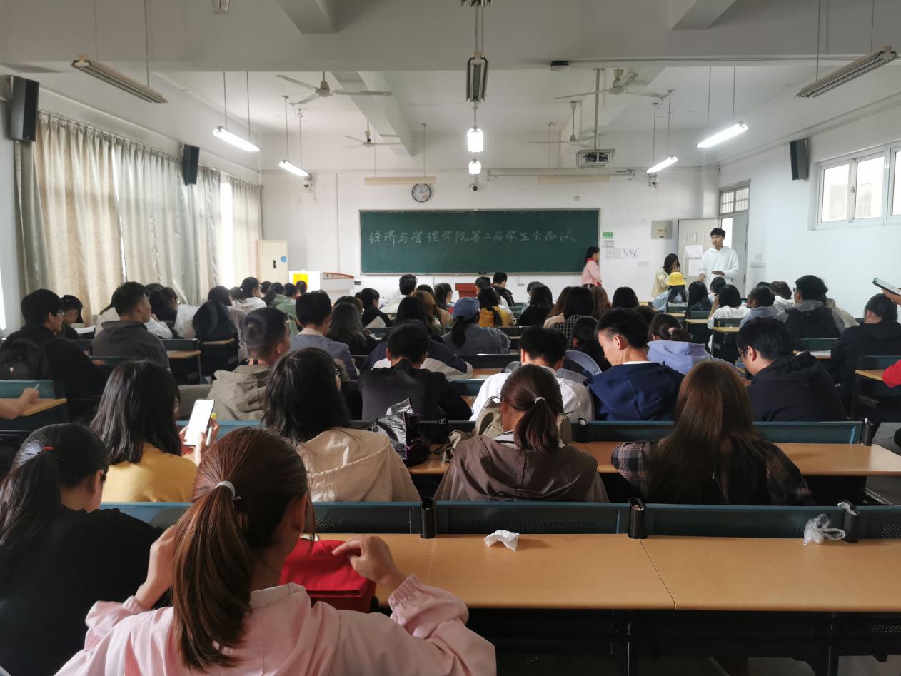 20201014經濟與管理學院學生會第一輪面試于我校一區博學樓C303307兩個教室拉開帷幕,參與本次面試的人員有經濟與管理學院學生會各部門分管主席、各部門部長以及前來面試的20級新生。