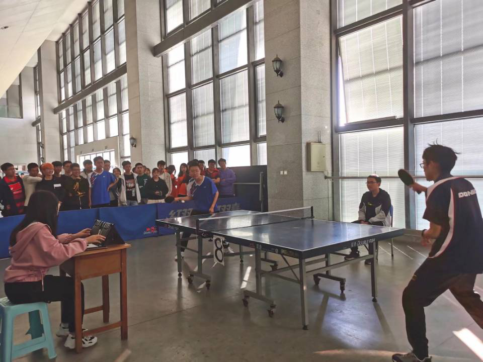 比賽分為兩個(gè)環(huán)節(jié),首先開始的是男子單打,在短暫的熱場(chǎng)后激烈的比賽正式開始了。雙方隊(duì)員靈活多變,神貫注,絲毫不敢掉以輕心。我院選手猶如猛虎下山一般,目光緊鎖,不斷發(fā)球、擊球,展現(xiàn)了他們游刃有余的打球技術(shù),最后取得了第二名的好成績(jī)。第二個(gè)環(huán)節(jié)是團(tuán)體賽,男乒與女乒同時(shí)進(jìn)行,共同展開激烈的角逐。只見我院選手們緊握球拍,猛力扣殺。“好球“加油”,場(chǎng)下歡呼聲與掌聲接連不斷。臺(tái)上的乒乓球來回飛舞,令人眼花繚亂,比分不斷變化著,觀眾們的心也緊繃著,最后我院男團(tuán)和女團(tuán)都取得了第二名的成績(jī)。
