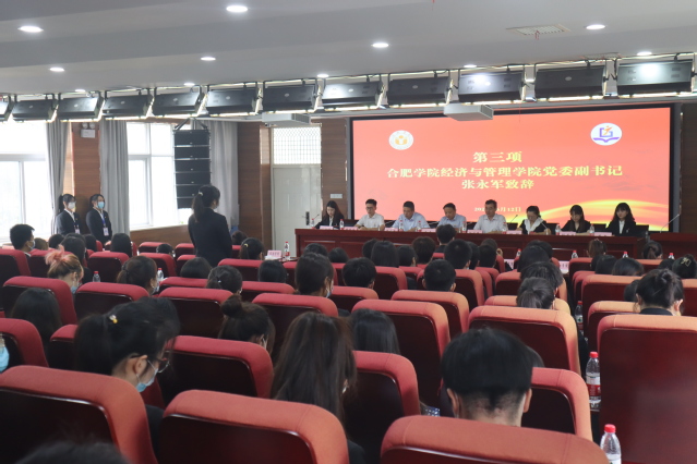 2022年6月12日,共青團合肥學院經濟與管理學院第一次代表大會、第二次學生代表大會開幕式順利舉行。出席本次大會的領導老師有合肥學院團委王玉老師、經管學院黨委書記楊學春老師、經管學院黨委副書記張永軍老師等,受邀出席大會的嘉賓有合肥學院學生會執行主席汪欣楠以及各兄弟學院學生會主席,全體學生代表參會。