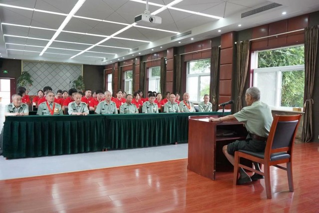 72日上午900,“合心知鄉”社會實踐團隊全體成員前往滁州市光榮院走訪其中的老黨員,并給他們送去了新鮮水果。首先,團隊成員們在負責人的帶領下前往老黨員們的住所。隊員們積極參與,打掃房間,并和老黨員們交流聊天。隨后,團隊成員前往會議廳,傾聽老黨員們講述他們的故事。第一位老黨員是一位參與淮海戰役的老兵,今年已經94歲了,17歲時就加入了軍隊。他向我們介紹了戰爭時期的相關事跡,并表達了對那段慘痛經歷的惋惜與對最終抗戰勝利的喜悅。第二位老黨員1967年報名參加抗戰,后期前往昆明參與戰爭;他向隊員們講述了當時歷史時期的故事,隊員們認真聆聽著,對他們的事跡由衷地感到敬佩。最后,全體成員與老黨員們進行合影留念。