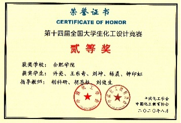 在此基礎上,本專業在培養學生化工創新和實踐能力上取得了諸多成效,參加全國化工設計大賽等各類大學生學科、技能競賽,獲得省級以上獎勵150余項。本專業建立了《化工熱力學》、《化工原理》線上線下以及化工過程模擬虛擬仿真6門校級金課。10個實驗微視頻上傳至“合肥學院在線學習平臺”,學生訪問量達2萬余次。出版了國家“十三五”規劃教材3本,校本教材10本。本專業教師獲國家級教學成果一等獎2項(2014年、2018年)。2018年通過國家工程教育認證專業,有效期限為2018年1月-2023年12月。2019年獲批國家一流本科專業建設點。