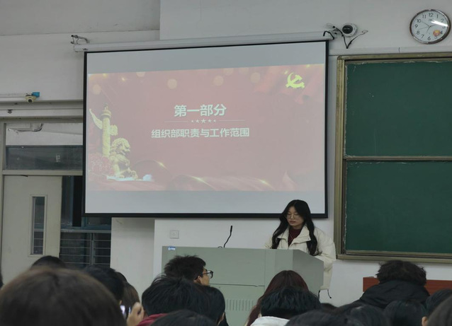 在同學們和老師入座后,例會正式開始。學生會各部門部長對本學期的工作計劃進行了詳細介紹。首先進行匯報的是辦公室部長,他先說明了辦公室上學期的工作內容,然后再說明本學期的工作內容以及需要其他部門相互配合的工作環節。隨后便是各個部長上臺匯報他部門的工作總結,并提出了很多本學期所要舉辦的活動和日程安排