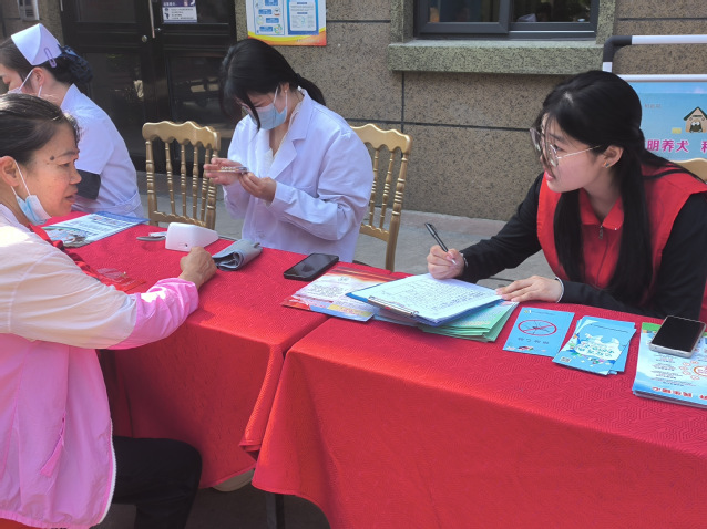 傳遞健康,關愛守護,為了給小區居民的健康生活提供便利,提高居民健康意識,提升居民健康水平,營造和諧社區氣氛,丹霞社區開展了便民義診,志愿者幫助現場義診的醫護人員登記前來測血壓、血糖的居民的信息在進行測量,并根據測量結果給與相應的健康建議。這項服務不僅能讓居民及時了解自己的血壓狀況,也提高了大家對自身健康的重視程度。