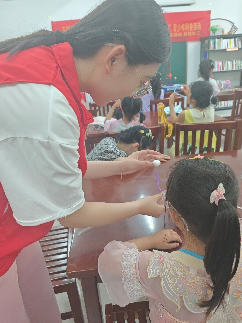 本次活動我們志愿者在旁邊維持紀律,分發實驗用品,幫助學生完成并帶動他們的動手能力,也提高了我們志愿者的耐心與責任感。