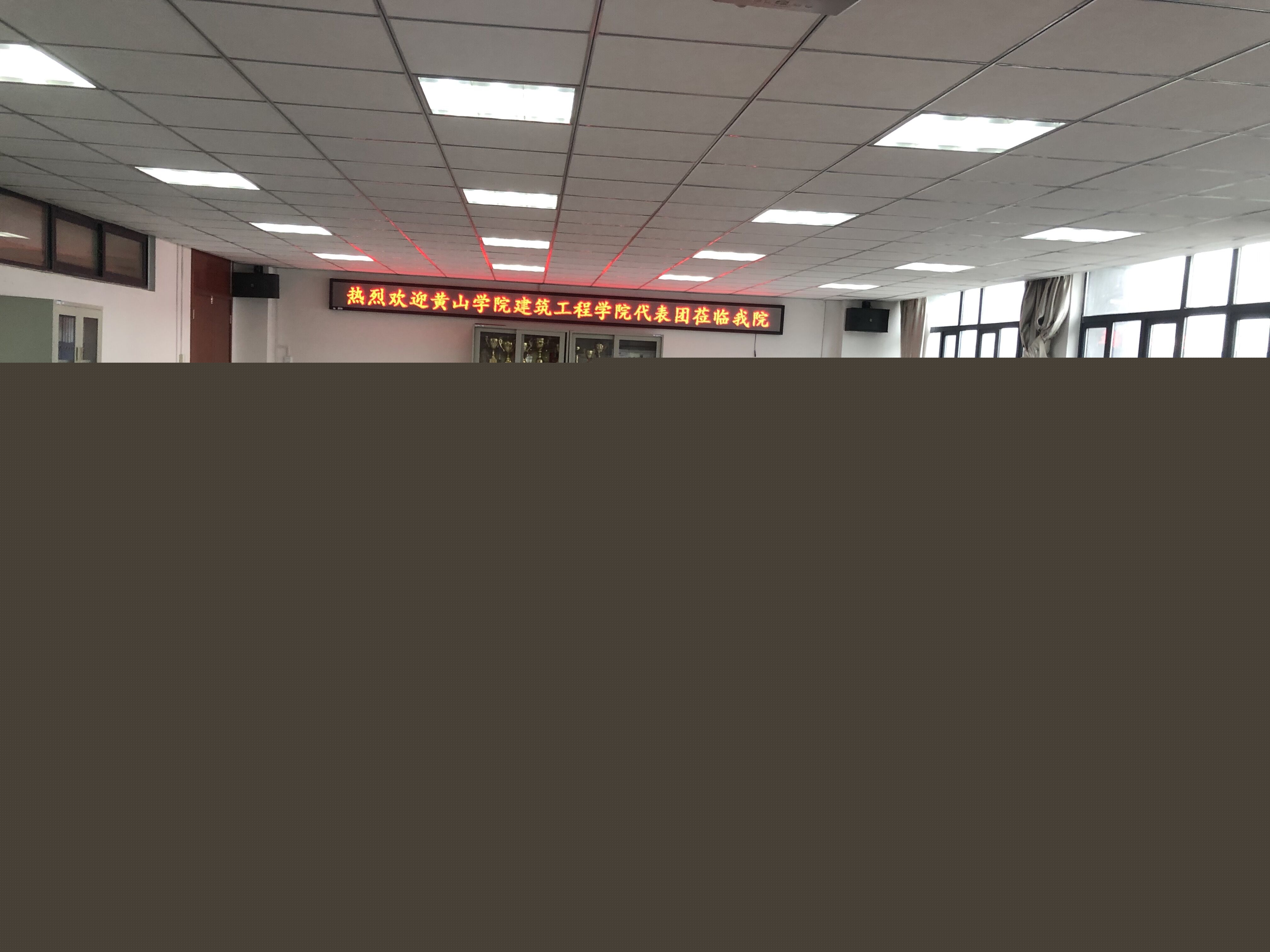 會上,華建兵副院長首先向來賓表示熱烈的歡迎。他從我院建設情況、專業方向以及師資力量等方面介紹了我院三個系部、一個實驗實訓中心以及未來專業增設的情況。隨后,周院長也就黃山學院建筑工程學院以及各教研室的基本情況做了大致介紹。雙方還就接下來要進行的專業評估和專業認證、碩士點建設和實驗室建設等方面展開了重點交流。周院長對我院實驗室建設和科研團隊方面的工作予以肯定,并邀請我院去黃山學院進行交流考察。