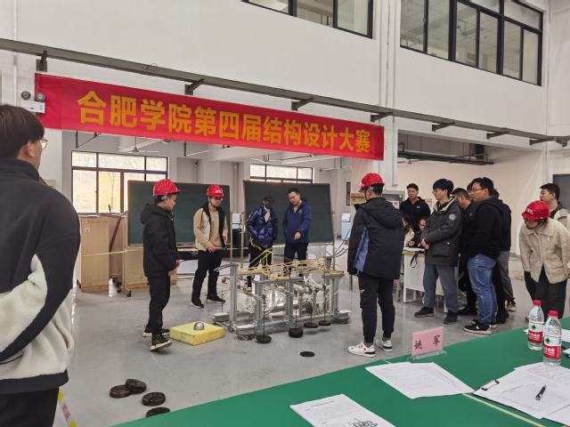 1210日上午,城市建設與交通學院在53#一樓結構大廳舉辦“合肥學院第四屆結構設計大賽”。出席本次比賽的嘉賓有城建學院院長華建兵、副院長劉偉,大學生創(chuàng)新創(chuàng)業(yè)教育中心副主任孫虹和教務處宋侃老師,安靜波、江衛(wèi)國、呂曉棠、姚軍和陳家騏五位老師擔任評委,16支隊伍共50名同學參賽。
