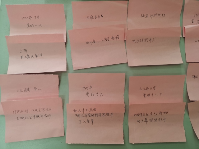 活動(dòng)伊始,支部黨員分為兩組進(jìn)行黨史知識(shí)卡片匹對(duì)比賽,用時(shí)短的隊(duì)伍獲勝。每組黨員爭(zhēng)分奪秒,利用平時(shí)集中學(xué)習(xí)和自主學(xué)習(xí)理論知識(shí)開(kāi)始兩兩組合。最終,兩組隊(duì)伍都順利完成任務(wù),正式黨員隊(duì)用時(shí)較短,獲得勝利。比賽完成后,支部書(shū)記劉艷雙詳細(xì)講解了卡片上的黨史知識(shí)。