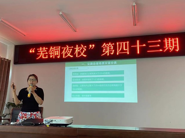 活動期間,華建兵院長一行了解了蕪銅高速公路的運營狀況和技術特點。段園煜副教授作了一場題為《公路邊坡地質災害風險分析、預防與治理》的專題講座。她結合豐富的實踐經驗和最新的科研成果,詳細闡述了公路邊坡地質災害的成因、風險評估方法以及預防和治理措施。隨后,雙方舉行了座談會,就交通工程領域的最新發展、技術難題以及未來合作方向進行了深入交流和探討。