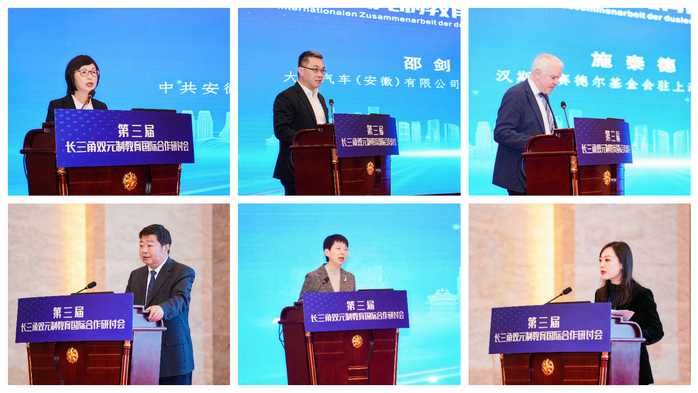 安徽省教育廳二級巡視員朱乃韜、江蘇省教育廳副廳長曹玉梅、德國海外商會聯(lián)盟大中華區(qū)高級經(jīng)理戴秋芳、安徽省汽車行業(yè)協(xié)會會長石琴分別作主旨報告。報告展現(xiàn)了安徽與江蘇兩省在雙元制教育國際合作方面的探索、實(shí)踐與成效,展示了德國海外商會大中華區(qū)與國內(nèi)諸多高校的合作項目與成果,以及安徽省汽車行業(yè)協(xié)會在與高校合作開展雙元制教育模式方面的成功實(shí)踐。