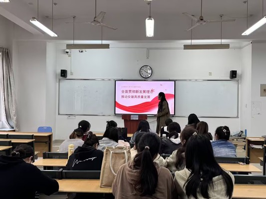活動伊始,黨支部書記王多慈老師帶領全體黨員回顧了習近平總書記三次來訪安徽的重要講話精神。黨的十八大以來,習近平總書記三次赴安徽考察調研,深入鄉村、城市、高校、企業、科研文化單位等,為新時代安徽創新發展明確方向、擘畫藍圖,要求安徽“在構建以國內大循環為主體、國內國際雙循環相互促進的新發展格局中實現更大作為,在加快建設美好安徽上取得新的更大進展”??倳浽谥v話中強調了創新、協調、綠色、開放、共享的新發展理念,為安徽乃至全國的發展指明了方向。 隨后,同學們共同觀看相關視頻資料。視頻中,安徽省各地在新發展理念的指引下,積極探索轉型升級之路,一批批高新技術產業蓬勃發展,綠色生態屏障日益堅固,對外開放水平不斷提升,人民群眾獲得感、幸福感顯著增強。同學們被一幕幕鮮活的畫面所震撼,紛紛表示要在新時代的征程中,更加堅定地踐行新發展理念。 視頻觀看結束后,支部組織了一場熱烈的討論會。黨員們結合各自的專業背景和實際經歷,暢談了對新發展理念的理解和對安徽高質量發展的思考。有的黨員提到,作為新時代的大學生黨員,要努力學習專業知識,為科技創新貢獻力量;有的黨員則關注到綠色發展,認為應該積極參與環保活動,倡導綠色生活方式;還有的黨員從對外開放的角度出發,談到了提升國際視野、增強跨文化交流能力的重要性。