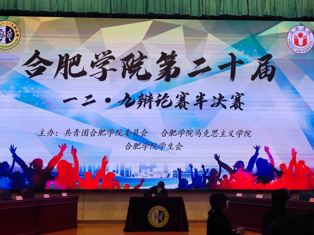 為了豐富學生課余生活,增強學生邏輯思維和語言表達能力,提高學生的辯論水平,由校團委主辦的合肥學院第二十屆一二·九辯論賽半決賽于11月29日晚7:30在圖書館報告廳A舉行。擔任此次比賽的評委有馬克思主義學院李繼友老師、黃瑩瑩老師、魏亞老師。