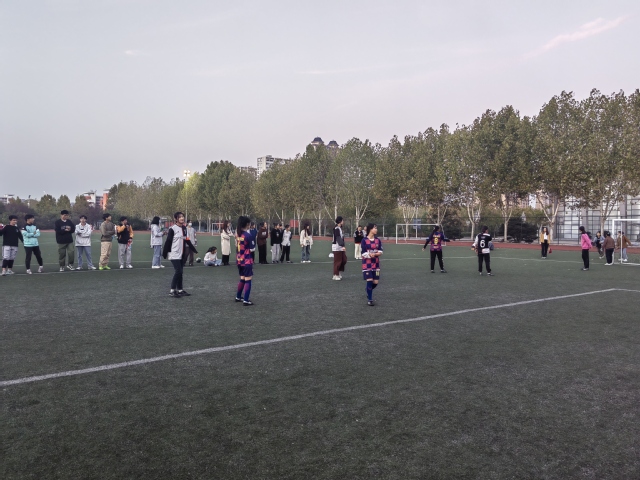 中場休息后,下半場比賽開始。雖然雙方有兩分之差,但我院女足仍不氣餒,竭力想彌補上半場的遺憾,使得下半場比賽賽況相較于上半場更加激烈。球員們都全力以赴,無論是隊形部署還是方法技巧都更加嚴謹。但天意不順人意,即使我院女足已經盡力攻守,最終還是輸了下半場比賽。