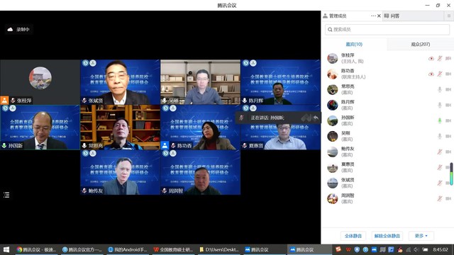 為貫徹落實全國及全省研究生培養(yǎng)和管理相關(guān)會議精神,建設(shè)高質(zhì)量的研究生導(dǎo)師和教育管理隊伍,1030日,教育學(xué)院組織教育專業(yè)學(xué)位碩士生導(dǎo)師參加全國教育碩士研究生培養(yǎng)院校指導(dǎo)教師研修會(線上會議)。此次會議由中國學(xué)位與研究生教育學(xué)會主辦、濟(jì)南大學(xué)承辦,來自北京師范大學(xué)、華東師范大學(xué)、湖南師范大學(xué)、安徽師范大學(xué)、上海師范大學(xué)等全國80多所高校的近200位代表共聚云端,就教育碩士研究生培養(yǎng)和管理等議題進(jìn)行了熱烈而深入的研討。劉紅、謝兆樹、劉菂斐、衛(wèi)萍、陳芬萍、夏蓓潔、陳艷艷等12位研究生導(dǎo)師或管理人員通過視頻連線參加了此次會議。