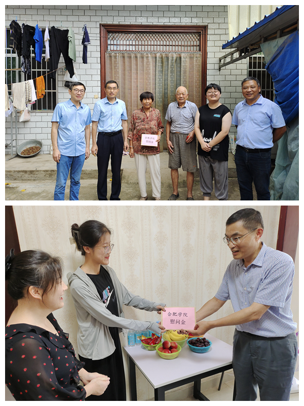 | 為進一步加強國家資助政策宣傳,提高資助精準度,增強資助育人實效,8月12日—13日,我院通過線下實地走訪的方式開展2023年暑期走訪慰問家庭經濟困難學生活動。 走訪期間,院黨委書記劉良宏、副書記王迅、黨政辦主任杜啟明、學工辦主任符琳一行前往蚌埠市、宿州市埇橋區兩地,對兩名家庭經濟困難學生進行實地家訪,并帶去慰問品。在學生家中,大家向學生家長反饋了學生在校的學習生活情況,了解了學生家庭的經濟來源和實際困難,并向家長介紹了國家、學校、學院的相關資助政策,征集家長對學生資助工作的意見和建議。家長對學校學院給予的慰問和關心表示由衷感謝,并表示會積極支持配合學校學院,繼續支持孩子讀書學習,做好孩子的教育管理工作。
