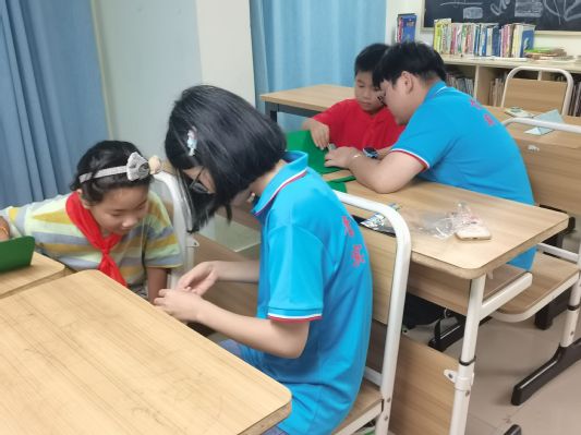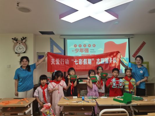 | 7月12日上午,合肥學(xué)院教育學(xué)院“七彩童年,‘育’你相伴”三下鄉(xiāng)社會(huì)實(shí)踐團(tuán)隊(duì)于合肥濱湖和園社區(qū)開(kāi)展了少年先鋒隊(duì)知識(shí)講座。本次課程由志愿者朱思宇擔(dān)任主講教師,志愿者張曉潔擔(dān)任助教。 人無(wú)精神不立,國(guó)無(wú)精神不強(qiáng)。小學(xué)是“筑牢信仰之基”的基石,我們社會(huì)應(yīng)不斷深挖紅色“富礦”,讓這寶貴的精神財(cái)富在校園里綻放新的光彩。課堂上,主講教師朱思宇開(kāi)門(mén)見(jiàn)山地拋出了一個(gè)問(wèn)題:“有沒(méi)有小朋友知道為什么紅領(lǐng)巾是紅色的?”孩子們議論紛紛,有的說(shuō)是由烈士的鮮血染成的,有的認(rèn)為這是紅旗的一角……教師解釋道:“紅領(lǐng)巾代表紅旗的一角、烈士的鮮血,它象征著少年先鋒隊(duì)的前生——?jiǎng)趧?dòng)童子團(tuán)在艱苦的環(huán)境中懷著一腔熱情投身于革命事業(yè),經(jīng)歷了血與火的考驗(yàn)。”孩子們聚精會(huì)神,聽(tīng)老師講述著少年先鋒隊(duì)的前世今生,為舍生忘死、碧血丹心的小英雄所動(dòng)容。 星星火炬,熠熠生輝。紅領(lǐng)巾隨風(fēng)飄揚(yáng),老師向孩子們娓娓道來(lái):“今天的幸福生活是革命先烈用鮮血和生命換來(lái)的,要繼承發(fā)揚(yáng)他們的奉獻(xiàn)精神和奮斗精神,熱愛(ài)黨、熱愛(ài)祖國(guó)、熱愛(ài)人民,讓胸前的紅領(lǐng)巾更加鮮艷……”孩子們個(gè)個(gè)認(rèn)真傾聽(tīng),一張張小臉時(shí)而凝重、時(shí)而展顏,他們的愛(ài)國(guó)熱情逐步被點(diǎn)燃。