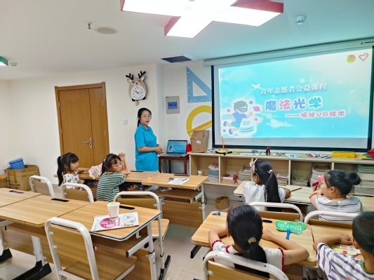 | 科學(xué)技術(shù)是第一生產(chǎn)力,為了讓孩子們切身感受科技進(jìn)步帶來(lái)的變化,培養(yǎng)孩子們的科技創(chuàng)新意識(shí)與動(dòng)手實(shí)踐能力,提高孩子們的科技文化素養(yǎng)。7月10日上午,合肥學(xué)院教育學(xué)院“七彩童年,‘育’你相伴”志愿團(tuán)隊(duì)來(lái)到濱湖和園社區(qū)開展社會(huì)實(shí)踐活動(dòng)。志愿者侯鑫宇和沈葉天作為授課老師為孩子們帶來(lái)了一堂以“科技創(chuàng)新”為主題的VR技術(shù)課程。 人類社會(huì)的每一項(xiàng)進(jìn)步都與科學(xué)技術(shù)緊密相連。5G、AI、VR等技術(shù)就像溝通現(xiàn)實(shí)與未來(lái)的使者,促進(jìn)人類發(fā)展,帶領(lǐng)人類走向更具有活力的新世界。課程伊始,侯鑫宇老師為孩子們講述了虛擬現(xiàn)實(shí)技術(shù)的發(fā)展、簡(jiǎn)介、應(yīng)用和未來(lái)四個(gè)方面的知識(shí),讓孩子們對(duì)VR技術(shù)有初步的認(rèn)識(shí)。亞里士多德曾言:“思維自驚奇和疑問(wèn)開始。”課堂上,孩子們專注的眼神、熱情的參與無(wú)不體現(xiàn)著對(duì)科學(xué)知識(shí)的興趣,雖然目前他們無(wú)法理解復(fù)雜的科學(xué)知識(shí),但是他們的學(xué)習(xí)熱情也未被消磨殆盡,非常積極地向老師提出問(wèn)題。