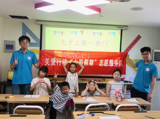| “回歸統(tǒng)一頌歌聲, 樂業(yè)安居愛國(guó)情。”7月11日,合肥學(xué)院教育學(xué)院“七彩童年,‘育’你相伴”社會(huì)實(shí)踐團(tuán)來到合肥市包河區(qū)濱湖和園社區(qū)開展“三下鄉(xiāng)”社會(huì)實(shí)踐活動(dòng)。團(tuán)隊(duì)成員沈葉天、李碩碩為孩子們帶來了一節(jié)音樂課——《七子之歌》,帶他們體會(huì)濃厚的愛國(guó)情。 澳門是大陸深深眷戀的孩子。1999年12月20日,五星紅旗在澳門升起,漂泊的游子終于回到了祖國(guó)母親的懷抱,為紀(jì)念這一令人心潮澎湃時(shí)刻,李海鷹完成了《七子之歌——澳門》的譜曲,澳門的小姑娘蓉韻琳唱出了無數(shù)國(guó)人的心聲。本節(jié)課,志愿者將這首辭微旨遠(yuǎn)的歌曲帶入了音樂課堂,與孩子們共同走進(jìn)燦若繁星的城市,一起體會(huì)堅(jiān)定的愛國(guó)精神,提高孩子們的愛國(guó)意識(shí)。課程伊始,志愿者通過播放短片讓孩子們走進(jìn)澳門,觀賞崇閣巍峨的大三巴牌坊,仰望高聳入云的澳門塔,閱覽交互輝映的海面風(fēng)光。孩子們專心致志地觀看視頻,他們無法想象這個(gè)小小的地方有如此壯麗的景色,有的孩子不由希望能親眼目睹這個(gè)美麗的地方。