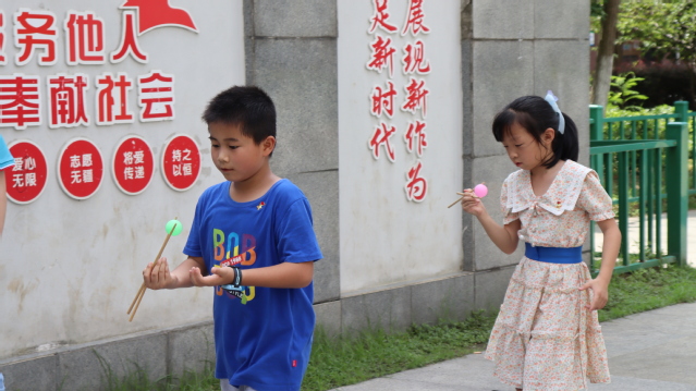 比賽進(jìn)入尾聲,最后一個(gè)環(huán)節(jié)也同樣精彩——用筷子夾乒乓球。逆水行舟用力撐,一篙松勁退千尋,通過(guò)孩子們不斷地嘗試和挑戰(zhàn),有的孩子抓耳撓腮,百試不得其中門道,有的孩子胸有成竹。孩子們?cè)谟螒蛑信囵B(yǎng)了他們的手、眼、腦、心的四者的協(xié)調(diào)結(jié)合以及持之以恒的團(tuán)結(jié)協(xié)作精神。微風(fēng)吹走孩子們的汗意,卻吹不散孩子們童年的喜悅,風(fēng)將永遠(yuǎn)伴隨著孩子們的歲月,由東到西,無(wú)拘無(wú)束。