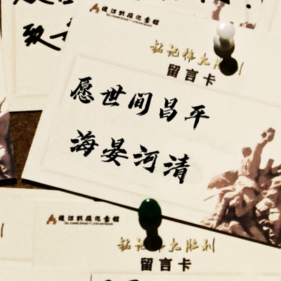 志愿者們在渡江戰役紀念館中收集了許多合肥市紅色革命文化資料,為調研分析做相關準備。他們參觀了館內展示的重點歷史事跡與歷史人物,全方位了解渡江戰役紀念館中紅色文化的繼承與傳播情況,同時對館內紅色文化的展示方式與途徑進行記錄。除了傳統的雕塑模型、文字、圖片描述、歷史文物陳列之外,紀念館還運用了科技化的投影放映與動態沙盆等。結束館內調研活動,團隊成員在展館內的烈士陵墓前默哀,在凝重的歷史氛圍中莊嚴宣誓、緬懷革命先烈,深受觸動寫下了“愿世間昌平,海晏河清”的美好祝愿。