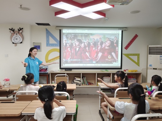 75日上午,合肥學院教育學院“七彩童年,‘育’你相伴”志愿團隊前往合肥市包河區濱湖和園社區開展“三下鄉”社會實踐活動。為讓同學們了解并學習手語,王玉、楊明月兩位志愿者為同學們帶來《國家》這首歌曲的手語舞蹈課。
