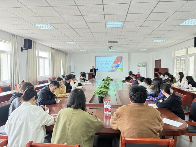 為深入學(xué)習(xí)習(xí)近平新時代中國特色社會主義思想,全面貫徹落實黨的二十大和二十屆二中、三中全會精神,準(zhǔn)確把握當(dāng)前經(jīng)濟(jì)形勢,提升黨員師生服務(wù)國家戰(zhàn)略的使命擔(dān)當(dāng),4月2日下午旅游與會展學(xué)院院長宋玉軍以“中國宏觀經(jīng)濟(jì)發(fā)展形勢分析與趨勢研判為題,為全院學(xué)生黨員講授專題黨課。