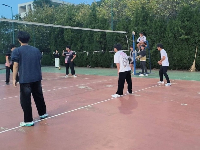當(dāng)一聲清脆的哨響拉開比賽的序幕,運動員們展開了激烈的比拼。隨著生物院鏗鏘有力的發(fā)球全場氣氛瞬間被引燃,加油聲、吶喊聲絡(luò)繹不絕。彩繩飛揚,排球場上一派緊張熱烈的歡騰景象。即使在你來我往的防守與發(fā)球學(xué)院以較小分差落后于教育學(xué)但學(xué)院的隊員們依舊情緒高漲,在重整旗鼓過后以驚險的分?jǐn)?shù)差距追上,在加時賽取得第一場比賽的勝利隨著第二場比賽開始,各院男排隊員陸續(xù)入場,緊張的氛圍彌漫在賽場上。當(dāng)哨聲的再度響起,男隊員們沉著冷靜,積極應(yīng)對,在教育院分?jǐn)?shù)的步步逼近下調(diào)整心態(tài),穩(wěn)定發(fā)揮,順利拿下整場比賽的勝利。