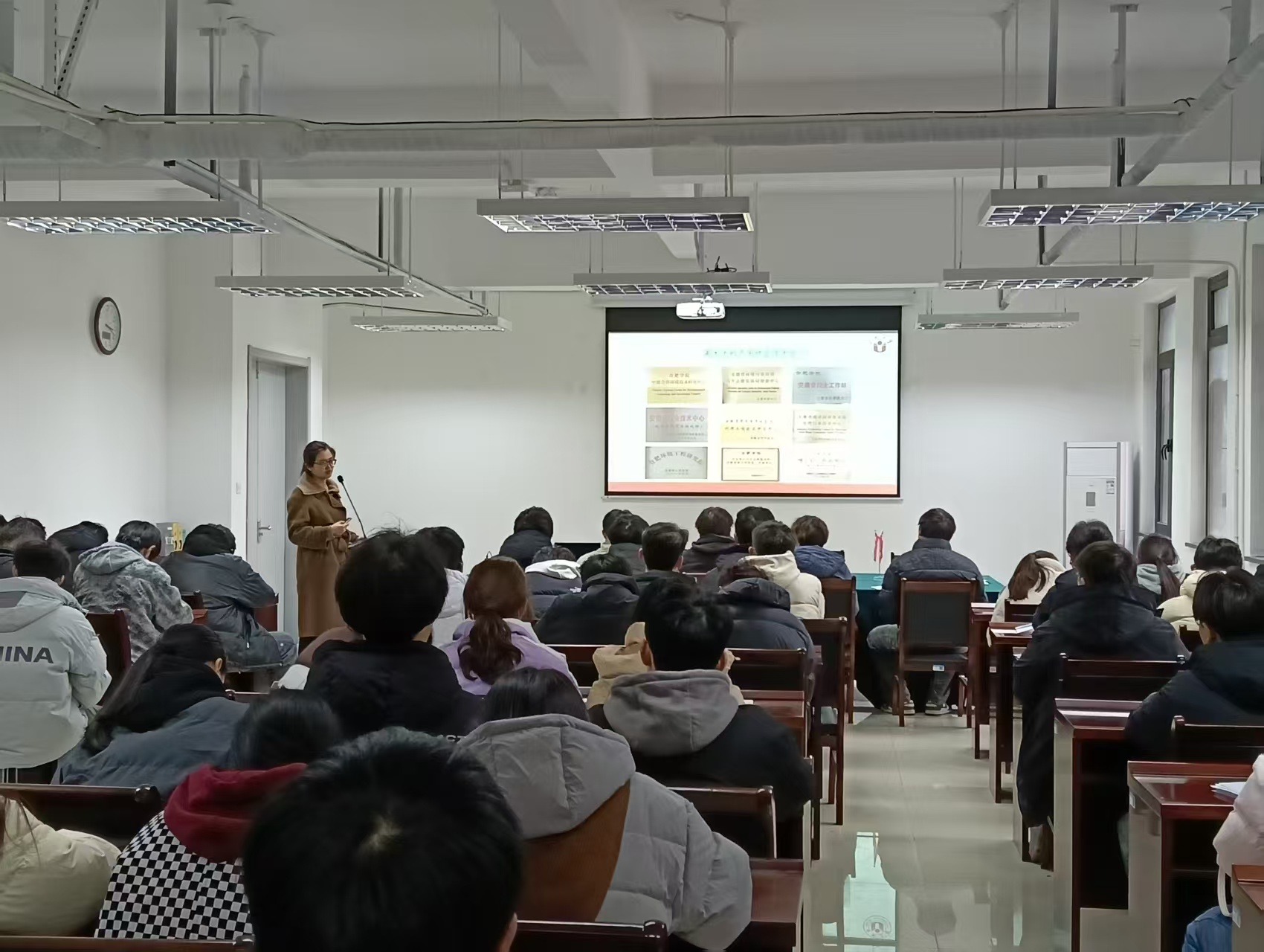 在蚌埠學院,食品與生物化工學院楊俊老師、土木與水利學院副院長朱蘭保和水利工程系黨支部書記潘爭偉接待并精心安排了宣講場所與參會學生,宣講對象主要為相關專業的大三和大四學生。在宣講過程中,環境與資源碩士點負責人劉曉薇從專業特色、科研項目及國際合作等方面進行了介紹,強調該專業在環境污染治理、資源循環利用及生態修復等前沿領域的研究優勢。食品營養與健康碩士點負責人肖青青詳細介紹了該專業的培養目標、課程設置、研究方向、招生計劃、科研項目成果及就業前景,并指出該專業緊密結合國家“健康中國”戰略需求,致力于培養復合型人才。此外,宣講團隊還詳細解讀了生物與醫藥和生物工程兩個專業的招生計劃、研究方向及培養模式,強調產學研結合和創新能力培養。
