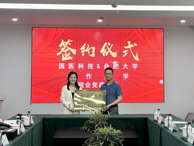 會上,雙方進行了“院企黨建聯建單位”“國醫啟航班合作辦學”簽約儀式、“安徽省研究生培養基地”、“黨建聯建單位”授牌儀式,并對未來的發展進行交流溝通。