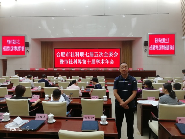 2020年9月19日,合肥市社科聯七屆五次全委會暨市社科界第十屆學術年會在合肥市政務會議中心召開。會議主題是強調從事哲學社會科學的理論專家們必須按照中央及省、市委的部署要求,在“大學習、大宣傳、大貫徹”中發揮自身優勢,強化自身責任,努力做到學好講好用好、深入推進習近平總書記考察安徽重要講話指示精神在合肥落地生根、開花結果。