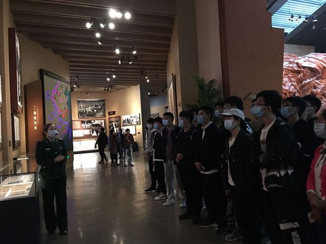 2020年10月30日下午,19機械電子(1)(2)班的40余名同學在《毛澤東思想和中國特色社會主義理論體系概論》課程黃瑩瑩老師的帶領下赴渡江戰役紀念館進行本學期的實踐教學。