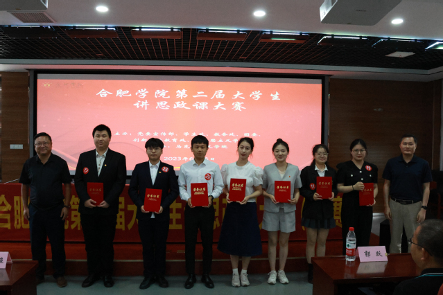 我校舉辦第二屆大學生講思政課大賽 為深入學習貫徹習近平總書記關于思政課建設的重要論述和黨的二十大精神,推動學習貫徹習近平新時代中國特色社會主義思想主題教育走深走實,積極推進我校思政課改革創新,6月16日上午,我校第二屆大學生講思政課大賽(決賽)在一期六棟教學樓學術報告廳舉行。合肥師范學院機關二黨委書記陶有浩教授、安慶師范大學馬克思主義學院副院長張俊生教授、安徽建筑大學馬克思主義學院副院長劉曉君教授、安徽中醫藥大學馬克思主義學院副院長郭躍教授和安徽藝術學院馬克思主義學院副院長陳昀嵐教授應邀擔任評委。馬克思主義學院院長陳志超、副院長蘇冰,馬克思主義學院全體教師、各參賽團隊指導老師及學生團隊代表現場觀摩。 本次大賽由校黨委宣傳部、教務處、學生處、創新創業教育處、團委和馬克思主義學院共同主辦,馬克思主義學院具體承辦。大賽分為初賽和決賽,初賽形式為視頻評選,決賽形式為現場授課展示。全校108組學生團隊報名參賽,經過初賽評審,共有23組團隊進入決賽。決賽現場,選手們圍繞黨的二十大報告中的關鍵詞,以“鄉村振興”“中國式現代化”“堅持全面法治國”“打贏網絡意識形態斗爭”“堅定文化自信”“綠水青山就是金山銀山”“構建人類命運共同體”等為主題,講述新時代的奮斗故事,展現新時代的偉大成就,盡顯“強國有我”的擔當,充分展示了新時代大學生昂揚的精神風貌和良好的理論素養。