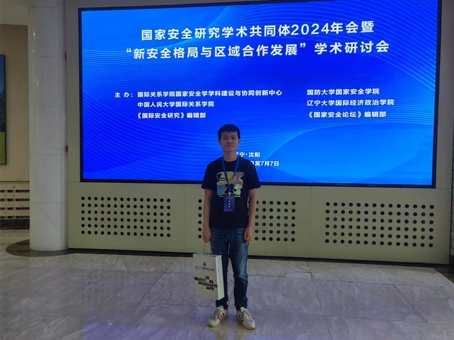 2024年7月4至7日,由國際關系學院、國防大學國家安全學院、中國人民大學國際關系學院和遼寧大學主辦的國家安全研究學術共同體2024年會暨“新安全格局與區域合作發展”學術研討會在遼寧沈陽舉辦。我院教師陶德強受邀參會,并在分論壇分享研究成果。