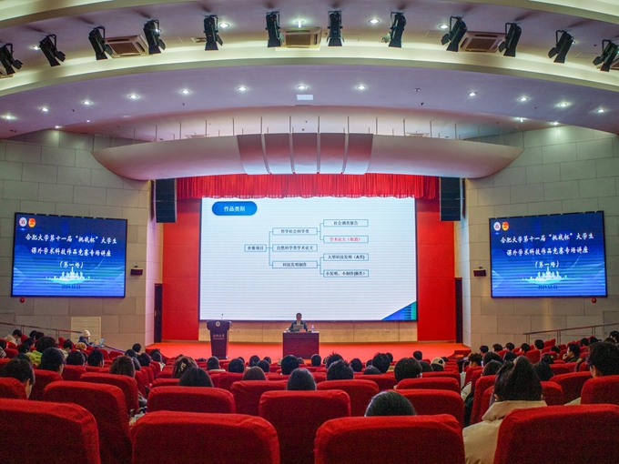 隨后開展的是“挑戰杯”大學生課外學術科技作品競賽專場講座,安徽誠恩文化科技發展有限公司總經理許飛擔任主講嘉賓。許飛細致地從賽事分類、參賽作品申報、評審標準等方面進行介紹,引用“田忌賽馬”典例深入淺出說明主體賽與專項賽的重要性。在選題邏輯方面,他指出了“時間早”和“主題正”的關鍵,在經驗與案例分析中,他圍繞往年優秀作品分享自己的見解,提議參賽者依據賽事做好標題明晰和調查報告真實的工作,強化成果運用。講座最后,師生們積極踴躍提問,許飛一一細致回復和指導。