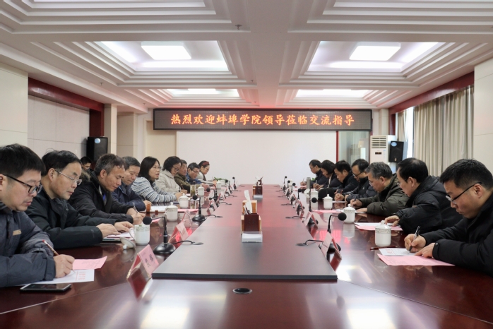 1月8日,蚌埠學院校長丁明一行來我校調研交流。調研座談會于行政樓九樓東會議室召開,校長吳春梅主持會議。研究生處處長葛春梅,科研處處長汪潘義,人工智能與大數據學院院長檀明、教授李紅,能源材料與化工學院院長董強,經濟與管理學院黨委書記楊學春、院長陳江華、教授殷輝等人參加會議。