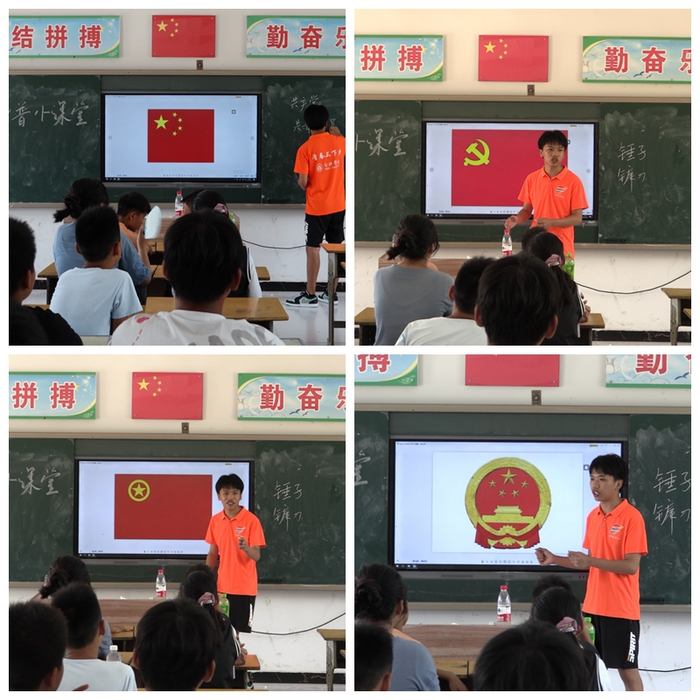 今年是中國共產(chǎn)黨成立100周年,全社會都在學(xué)黨史,但是由于教育資源的短缺,陡張村孩子們不像城里的孩子擁有各種電子設(shè)備去了解歷史,他們能夠接觸到的或許只有課堂上的點(diǎn)滴。在支教中,隊員向孩子們介紹中國共產(chǎn)黨和中國共青團(tuán)的先進(jìn)事跡,讓孩子們更加具體了解黨為人民服務(wù)的宗旨,通過一個個小故事的講述,共產(chǎn)黨不再抽象,而是我們身邊熟悉的、親切的每一個人。
