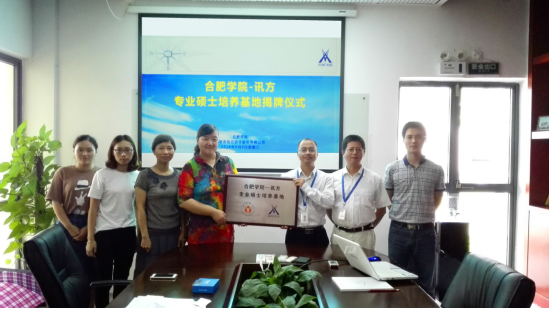 2016年8月3日,我院研究生導師顧涓涓教授及電子信息及電氣工程系張蘊老師前往深圳市訊方技術股份有限公司進行交流訪問,受到公司副總裁姚勇的熱情接待,并舉行了合肥學院-訊方專業碩士培養基地揭牌儀式。